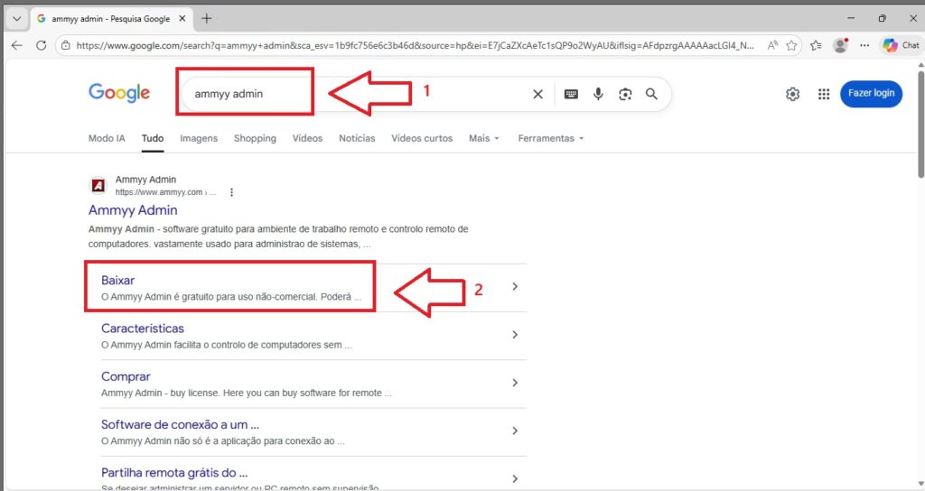 3.5) Clique em Baixar no resultado encontrado para o Ammyy Admin
