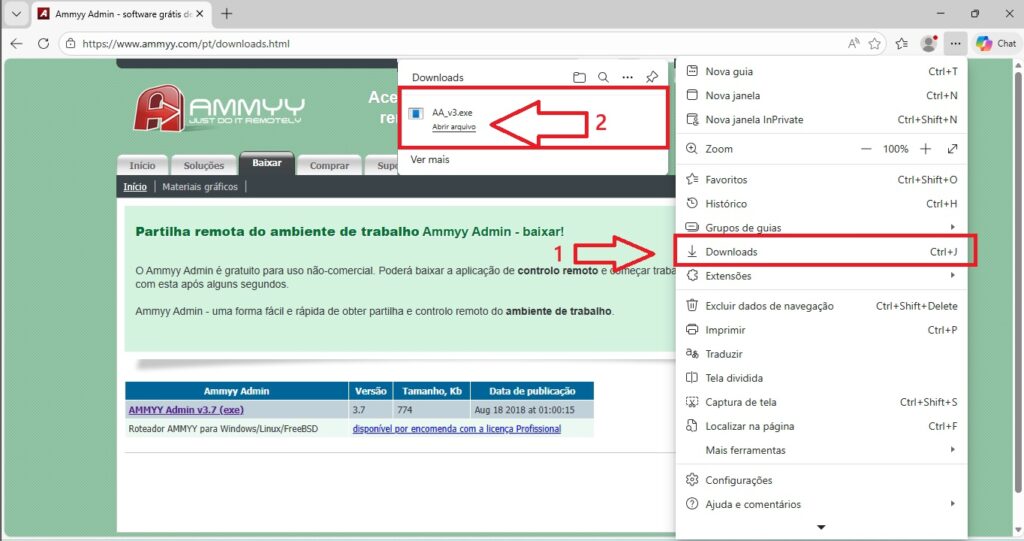 3.6) Clique em Ammy Admin para baixar o arquivo. Irá abrir uma tela com a conclusão do Download. Clique em abrir aquivo.